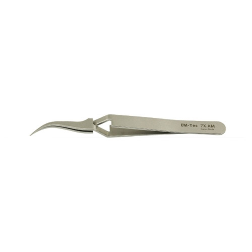 EM-Tec 7X.AM high precision reverse tweezers, style 7, very fine curved tips, anti-magnetic stainless steel