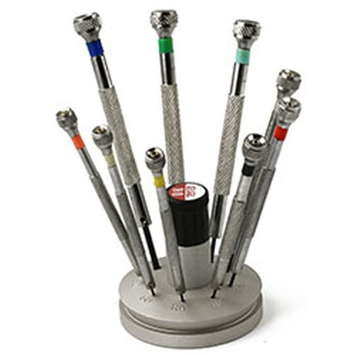 Value-Tec SR9 screwdriver set with heavy revolving base, 0.5-2.0mm blades